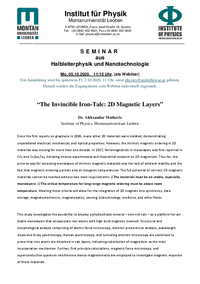 Institut für Physik Montanuniversität Leoben A-8700 LEOBEN, Franz Josef Straße 18, Austria Tel: +43 3842 402-4601, Fax:+43 3842 402-4602 e-mail: physics@unileoben.ac.at SEMINAR aus Halbleiterphysik…
