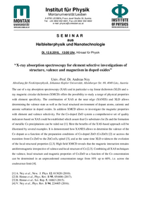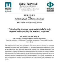 Institut für Physik Montanuniversität Leoben A-8700 LEOBEN, Franz Josef Straße 18, Austria Tel: +43 3842 402-4601, Fax:+43 3842 402-4602 e-mail: physics@unileoben.ac.at SEMINAR aus Halbleiterphysik…