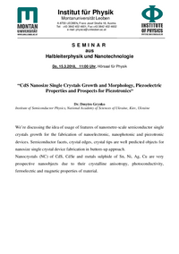 Institut für Physik Montanuniversität Leoben A-8700 LEOBEN, Franz Josef Straße 18, Austria Tel: +43 3842 402-4601, Fax:+43 3842 402-4602 e-mail: physics@unileoben.ac.at S E M I N A R Semiconductor…