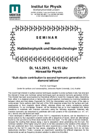 Institut für Physik Montanuniversität Leoben A-8700 LEOBEN, Franz Josef Straße 18, Austria Tel: +43 3842 402-4601, Fax:+43 3842 402-4602 e-mail: physics@unileoben.ac.at SEMINAR aus Halbleiterphysik…